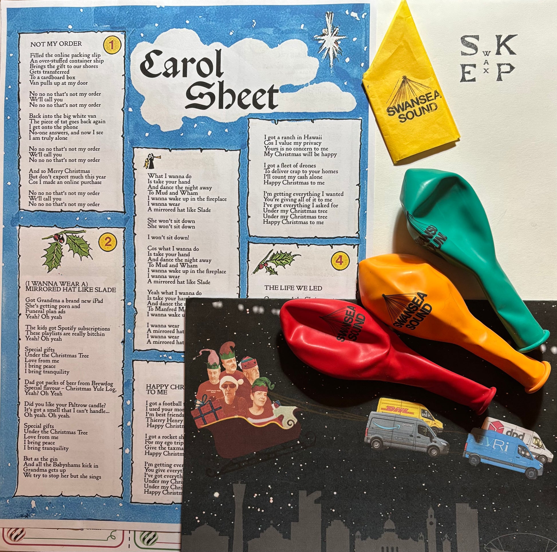 The limited 12” hand-stamped vinyl LP comes with Swansea Sound ballons and party hat, cracker jokes about other bands, a ‘carol service’ lyric sheet and a signed greetings card. Including optional MP3 downloads.